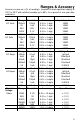 Ranges & Accuracy Accuracy is give as ± ([% of reading] + [number of least significant digits]) at 18°C to 28°C with relative humidity up to 80%, for a period of one year after calibration. Function DC Volts AC Volts Function DC Amps AC Amps Function Voltage Ohms Range Resolution Accuracy 200mV 100µV 0.5% + 1 digit 2V 1mV 0.5% + 1 digit 20V 20V 0.5% + 1 digit 200V 0.1V 0.5% + 1 digit 1000V 1V 0.5% + 1 digit 200mV 100µV 0.8% + 3 digits 2V 1mV 0.8% + 3 digits 20V 10mV 0.8% + 3 digits 200V 0.1V 0.