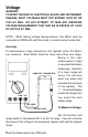 Voltage WARNING! TO AVOID THE RISK OF ELECTRICAL SHOCK AND INSTRUMENT DAMAGE, INPUT VOLTAGES MUST NOT EXCEED 1000V DC OR 750V AC RMS. DO NOT ATTEMPT TO TAKE ANY UNKNOWN VOLTAGE MEASUREMENT THAT MAY BE IN EXCESS OF 1000V DC OR 750V AC RMS. NOTE: When taking voltage measurements, this Meter must be connected in PARALLEL with the circuit, or circuit element under test. Accuracy A measurement range determines the highest value the Meter can measure. Most Meter functions have more than one range.