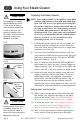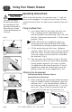 Using Your Steam Cleaner ! CAUTION After plugging in the power cord and beginning to heat, a fixed amount of water is released due to the build-up of internal pressure. After heating is complete, spray the steam 2 to 3 times before affixing or switching any additional attachment. i Fig 9 Fig 10 Control Trigger Fig 11 Lock for Continuous Steam ! CAUTION Operating the Steam Cleaner: NOTE: Your Steam Cleaner is designed to clean hard surfaces and upholstery that will withstand high heat.
