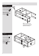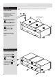 Assembly Instructions Step 4 Fit the base Attach the base 6 to the left divider 3 and right divider 4 with 4 screws F . 4 F 3 6 F Finished front edge F F Finished front edge Step 5 Prepare the left side Screw 6 metal dowels A into the left side 1 . Insert 2 large locking nuts B into the left side .1 . K A K B K A Finished front edge A A A D B D A Tap 2 wooden dowels D into the left side 1 .