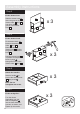 Assembly Instructions Step 1 A Prepare the 3 drawer fronts Screw 2 metal dowels A into each of the drawer fronts 12 . A A 12 x3 Note: Tighten the metal dowels up fully against the panels. Step 2 Prepare the drawer sides Insert a small locking nut C into the hole shown on the left drawer side 13 and the right drawer side 14 . C C C 14 13 x3 Note: The arrow on the locking nut must point towards the hole in the edge of the panel.