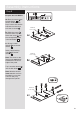 Assembly Instructions Step 20 Prepare the other 2 long rails Insert 2 large locking nuts B into each of the 2 long rails 9 . Tap 2 wooden dowels D into each of the 2 long rails 9 . B D Finished front edge x2 9 B D Step 21 Fit the 2 long rails Push the 2 long rails 9 onto the right side 2 . 2 Use a screwdriver to tighten the 2 large locking nuts B fitted to the long rails 9 . 9 9 Note: Fit the long rail at the back last and support it until the left side has been fitted in the next step.