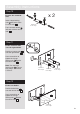 Assembly Instructions Step 13 B B Prepare the base Insert 4 large locking nuts B into the base .6 B Tap 2 wooden dowels D into the base 6 . 6 B Finished front edge Step 14 Fit the base Attach the base 6 to the left divider 3 and right divider 4 with 4 screws F . 4 3 F 6 F F F Finished front edge Step 15 Prepare 2 of the long rails B D A Screw 2 metal dowels A into 2 of the long rails 9 . A Insert 2 large locking nuts B into 2 of the long rails 9 .