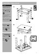 Assembly Instructions Step 2 Fitting the table top A a: A A a: Place a small amount G A of Glue G into the dowel holes. Insert Dowels A fully into the Large legs 6 . A Note: Use a hammer to beat the dowels on appropriate deep of dowel holes. 6 6 6 Note: For small table, repeat with Small legs 7 . 6 b: Carefully locate the Large table top 1 onto the unit. b: 1 Note: For small table, replace 1 with Small table top 2 . c: C Plastic supports E onto the Large table top 1 and unit.