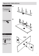 Assembly Instructions Step 1 a: B Attaching front panel a: B B B the Plastic supports A onto the Front panel 5 . A B A A A 5 b: B b: B B Front panel 5 onto the Bottom panel 2 . B 5 B 2 Step 2 Attaching middle shelf back edge Use Long wooden dowels C panel 8 and Lower central panel 7 onto the Middle shelf 3 . Two persons assembly is required.