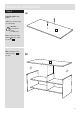 Assembly Instructions Step 5 a: Attaching table top panel E With help, carefully stand TV unit upright. E Warning: The TV unit is heavy. Lift with care. 1 a: Insert Short wooden dowels E into the Table top panel 1 . b: Carefully place the Table top panel 1 onto the unit.