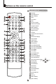Function buttons and external sockets Front panel of the TV set VIDEO L-AUDIO-R Video R/LAudio Headphone jack Power Switch Power Indicator TV/DVD MENU Play the DVD V- V+ P- P+ Stop the DVD The DVD Player Menu Signal Receiver TV/DVD Switching Open/close the DVD Channel Position up/down Volume up/ down Rear panel of the TV set TV EXT TV EXT TV SCART Terminal