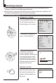 Searching channel Continued Semi-automatic search Semi-automatic search 1 Press the P+/- buttons or PROGRAM NUMBER 0-9 buttons to choose desired channels I.E. channel 1 P+ V- MENU V+ 1 AUTO DK 2 Press the TUNE menu button , till the TUNE menu shown on the right display on the screen. P- 3 Press the P+/- buttons to select " SEARCH". P+ V- MENU P- V+ 4 Press the V-/+ buttons to start searching.