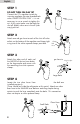 English STEP 5 Note: Make sure the body of the keg coupler is in the closed (up) position before installing it on the beer keg. Install keg joining bracket to the first 1⁄4 barrel keg. Place one of the two keg couplers onto the first (bottom) keg and turn clockwise to engage. To activate push down the coupler and turn clockwise. BE SURE THAT THE HOSES ARE OVER THE KEG JOINING BRACKET. It is normal to have some beer spray from the keg during this process.
