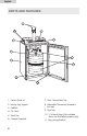 English Parts and Features 7 6 8 9 5 4 10 3 11 2 1 1. Casters (Total 4) 7. Dual Chrome Beer Tap 2. Interior Keg Support 8. A djustable Thermostat (Located in the rear) 3. Cabinet 4. C02 Tank 5. Work Top 6. Chrome Guardrail 5 9. Drip Tray 10. 1 /4 Barrel Kegs (Not included shown for illustration purpose only) 11.