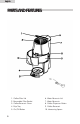 English PARTS AND FEATURES 3 1. Coffee Filter Lid 6. Water Reservoir Lid 2. Removable Filter Basket 7. Water Reservoir 3. Coffee Reservoir Cover 8. Coffee Dispenser Button 4. Drip Tray 9. Coffee Reservoir 5. On/Off Button 10.