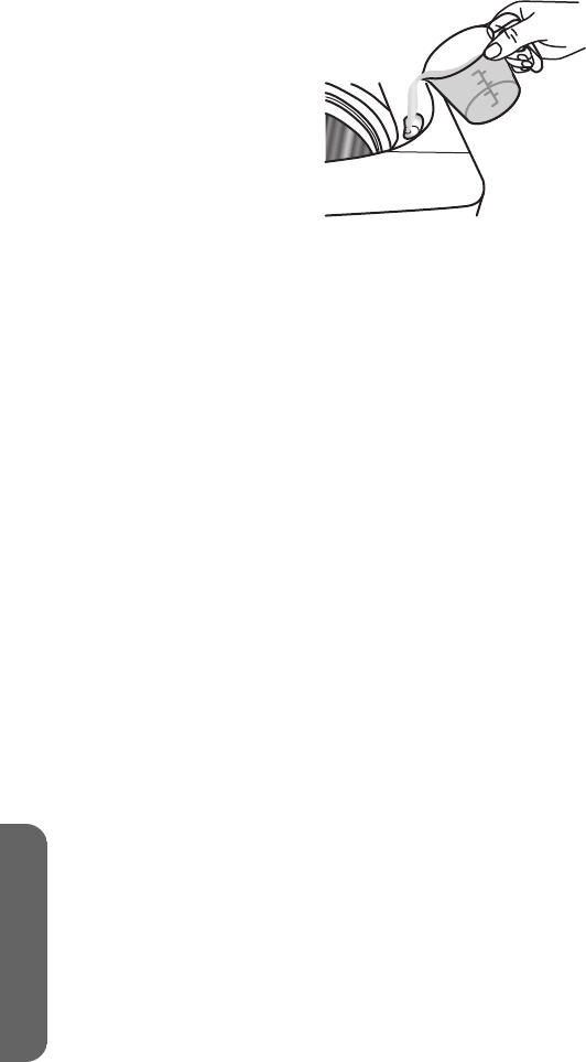 2. Vierta una medida de blanqueador líquido con cloro en el depósito de