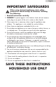 English table of contents Important Safeguards................................................................. 1 Safety Instructions....................................................................... 3 Parts and Accessories.................................................................. 5 Pre-Operating Instructions.......................................................... 6 Operating Instructions................................................................. 7 Starting Off.........................