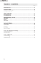 English TABLE OF CONTENTS PAGE Safety Precautions ........................................................................................................1 Parts And Features........................................................................................................4 Installing Your Wine Cellar ..........................................................................................5 Unpacking Your wine cellar ....................................................................................