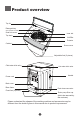 Product overview Top lid Detergent tray (Not applicable for HWT60AA1 model) Outer tub cover Top deck Inner tub Lint filter Pulsator Cabinet Screw cover Adjustable feet (2 pieces) Cold water inlet valve Power cord Hot water inlet valve Handle Back cover Base frame Fixed feet (2 pieces) Drain hose connector Drain pump filter cap (Not to be removed by the customer) Please understand the shapes of the washing machine and accessories may be different from the sketch figures in this manual due to