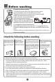 CONTENTS Product overview Safety precautions 1 2 Description of symbols Safety Safety warnings 2 2 2 Installation & adjustment Installing the bottom plate Balancing the washing machine Installation of the drain hose Installation of water inlet hoses Before washing Check the following before washing Operation Loading your laundry Loading detergent Explanation of the display 4 4 5 5 6 7 7 8 8 8 9 Operation and Wash Cycles 12 Cleaning and Maintenance 14 Trouble-shooting 15 16 17 Packing list