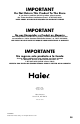 consommateurs “Haier Customer Satisfaction Center” au 1-877-337-3639.