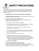 SAFETY PRECAUTIONS: 1. DO NOT RUN THE ENGINE IN AN ENCLOSED AREA. Be sure the area is well ventilated. 2. Stay away from moving parts. Avoid wearing loose jackets, shirts and ties. 3. Keep the equipment and surrounding area clean. Cluttered areas invite accidents. 4. Keep power shields and guards in place. Do not make adjustments and repairs while the engine is running, unless specified for in repairs. 5. Do not run the pump more than two min. without water in pump. 6.