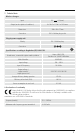 7. Technické údaje Bezdrátová nabíječka Vstup Výstup (za optimálních podmínek) 9V 4 A (max.) 2x 5 W / 2x 7,5 W / 2x 10 W max. Rozměry 200 x 89 x 17 mm Připojení DC 5.0 zdířka dutého konektoru Konektor síťového zdroje Polarita DC 5.0 dutý konektor Připojení Údaje podle nařízení (EU) 2019/1782 Obchodní značka, číslo obchodního rejstříku, adresa Hama, HRA12159, Dresdner Str.