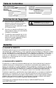 Tabla de Contenidos Tabla de Contenidos Información de Seguridad Garantía Pre-Instalación Planificación de la Instalación Herramienta Ferretería Contenido del Paquete 10 10 10 11 11 11 11 12 Instalación Operación Cuidado y Limpieza Mantenimiento Exterior Mantenimiento Interior Solución de Problemas 13 14 15 15 15 15 Información de Seguridad Antes de iniciar la instalación de este aparato o la eliminación de un accesorio anterior, desconecte la alimentación apagando el disyuntor o quitando el fusible