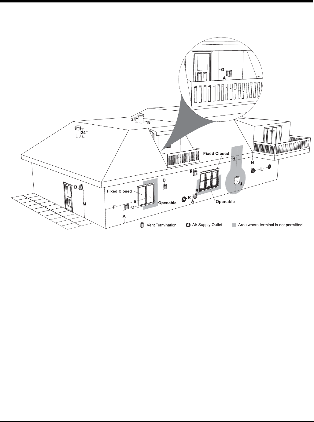earance to non-mechanical air supply inlet to building or the combustion air inlet to any other appliance *(12"/30cm)