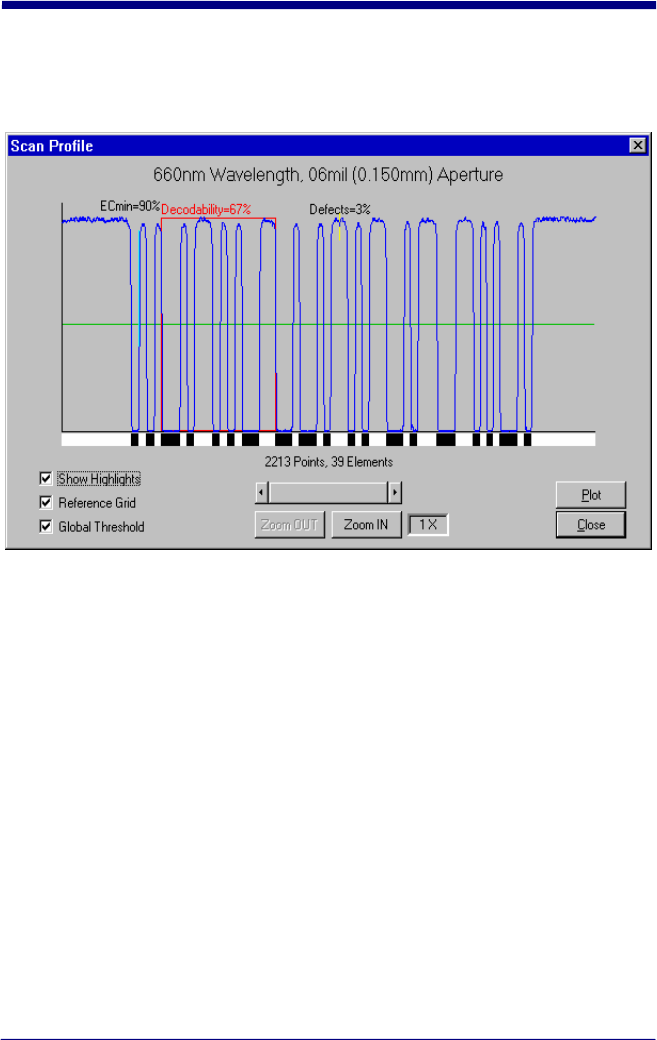 The following illustration shows a Scan Reflectance Profile from a Quick Check