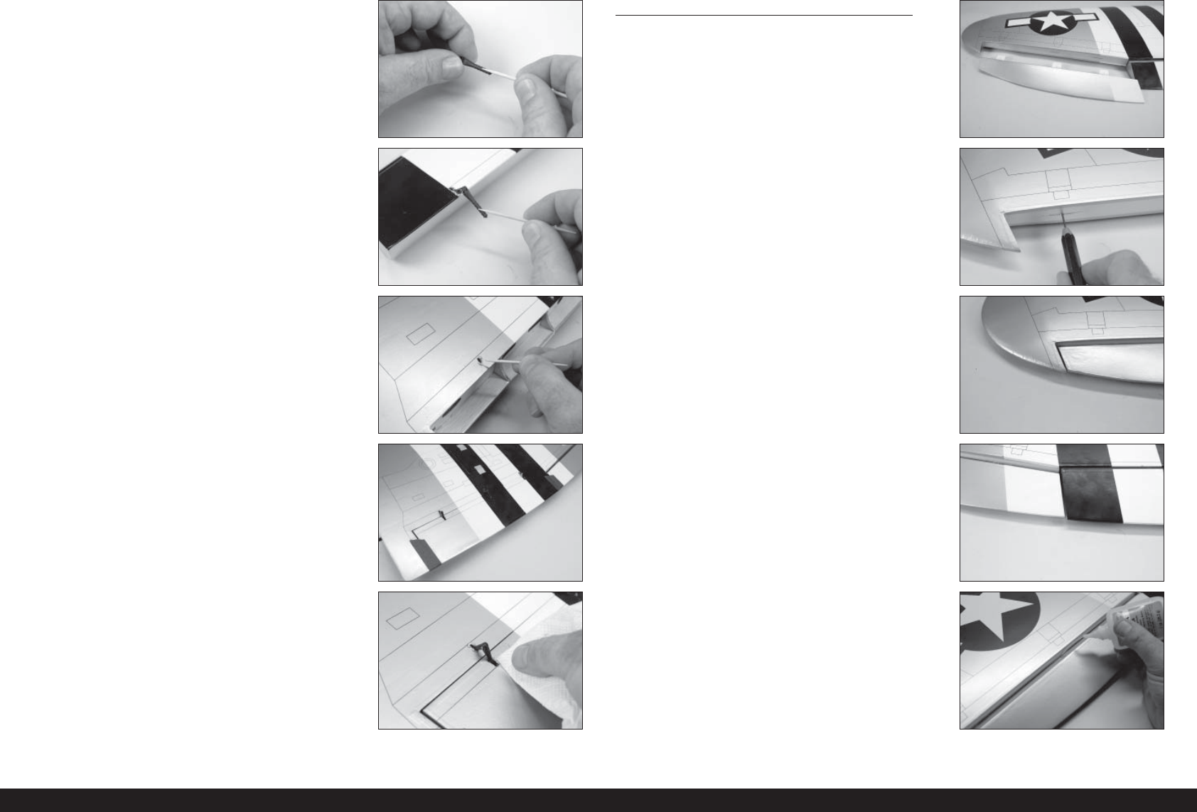 12. Apply epoxy into each of the holes in the wing. 17. Check the gap between the wing tip and aileron.