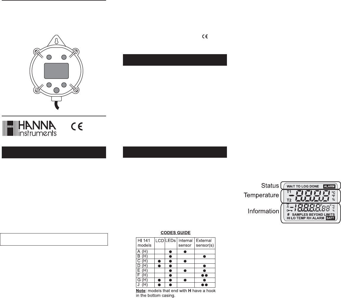 HI 141 loggers are warranted for one year against defects in workmanship and materi-