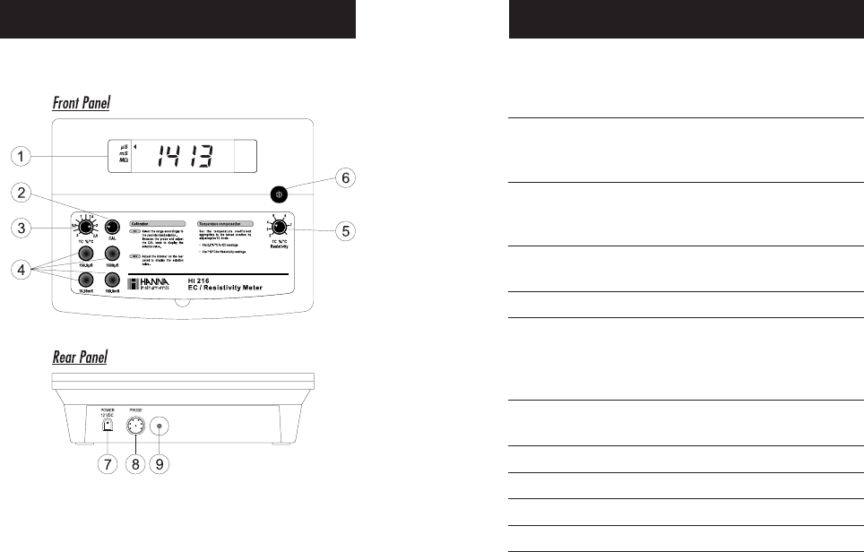 4) Range keys, to select the 199.9 μS/cm, 1999 μS/cm,