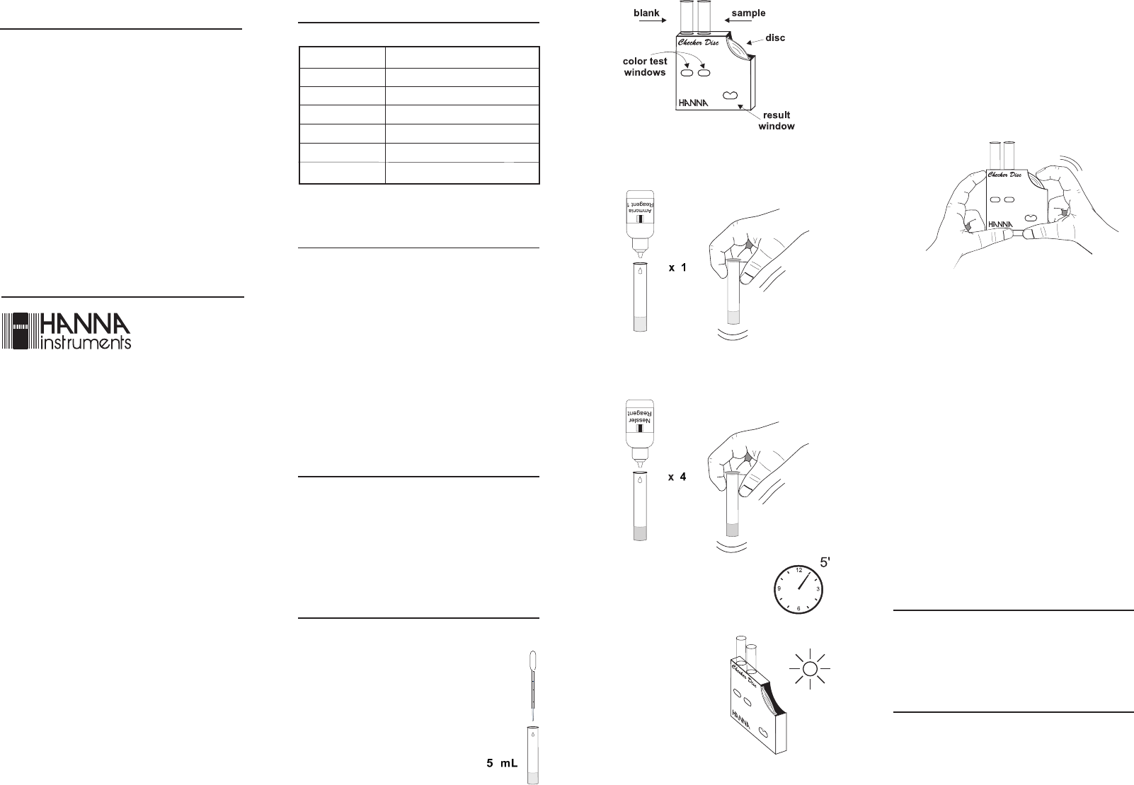 • Add 1 drop of Ammonia Reagent 1, replace the cap