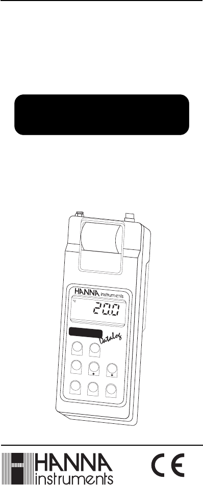 Dear Customer, Thank you for choosing a Hanna Product. Please read this instruction manual carefully before using the instrument. This manual will provide you with the necessary information for a correct use of the instrument, as well as a precise idea of its versatility. If you need more technical information, do not hesitate to e-mail us at tech@hannainst.com. These instruments are in compliance with directives EN 50081-1 and 50082-1. TABLE OF CONTENTS PRELIMINARY EXAMINATION ............................