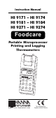 Instruction Manual HI 9171 – HI 9174 HI 9181 – HI 9184 HI 9271 – HI 9274 Foodcare Portable Microprocessor Printing and Logging Thermometers Foodcare PRT 5 PAPER6 PRINTING AND LOGGI NG THERMOMETE R ALT 4 TEMP 2 TIME 1 3 LOG http://www.hannainst.