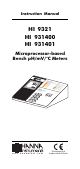 Instruction Manual HI 9321 HI 931400 HI 931401 Microprocessor-based Bench pH/mV/°C Meters ins rum ns pH ca libration CAL / pH CFM / CFM Select Confir °C Start Select Confir m wh m wh buffer calibra buffer proce dure tion MEM dy en rea MR COMM dy RANG HI 93 MIC 1401 pH M ROPROCE ETER SSOR MEM Functio n 1 value en rea 2 value E Sel ect For sto Recal For RS pH or ring dis l previo 232 con ORP us sto figurati measu play res red dat ult a on rement ON °C OFF MR °C