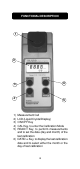 FUNCTIONAL DESCRIPTION 1 2 6 3 4 5 1) 2) 3) 4) 5) Measurement Cell LCD (Liquid Crystal Display) ON/OFF Key CAL Key, to enter the Calibration Mode READ/⇑ Key, to perform measurements and to set the date (day and month) of the last calibration 6) DATE/⇒ Key, to display the last calibration date and to select either the month or the day of last calibration 6
