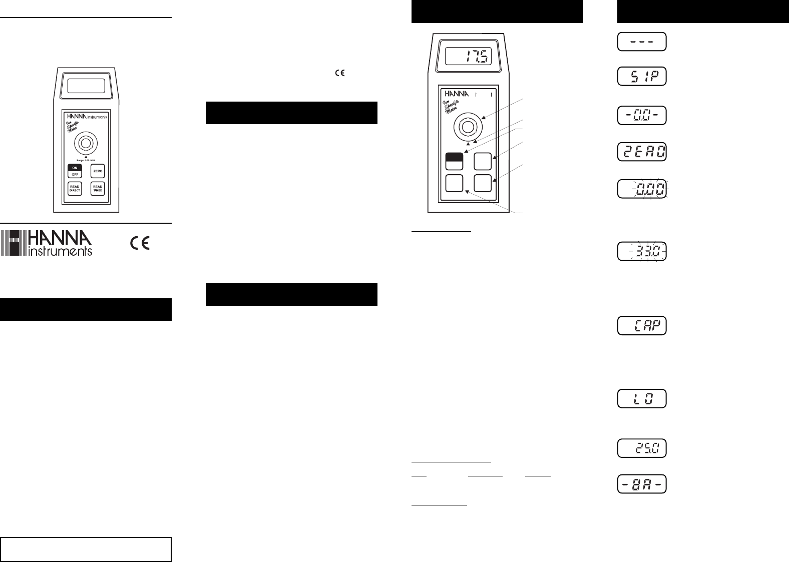 instrument is to be returned to Hanna Instruments, first obtain a Returned