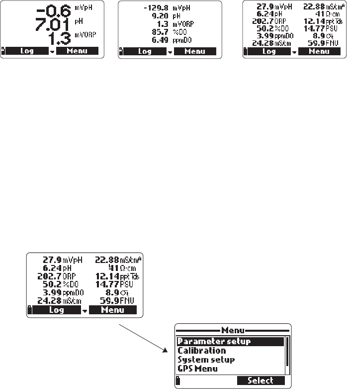 parameter setup, calibration, system setup, GPS and status options. See the
