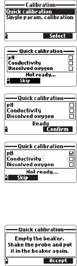• Following the pH calibration, “Conductivity” will start to blink along with the