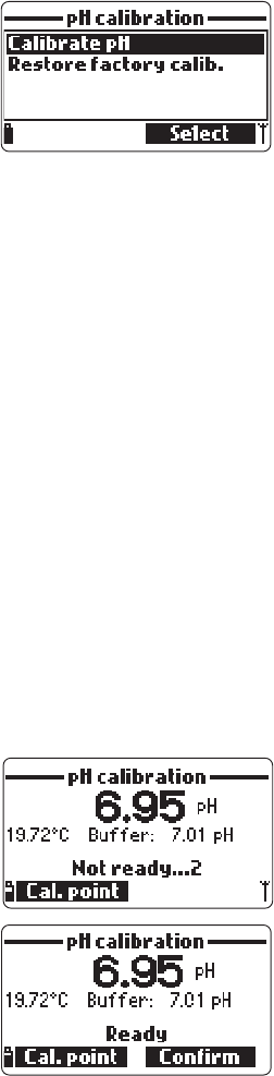 If “Calibrate pH” is selected, the user can perform a new calibration using up to