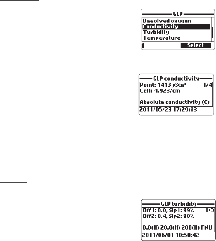 Notes A “C” letter near the conductivity calibration indicates a custom point,