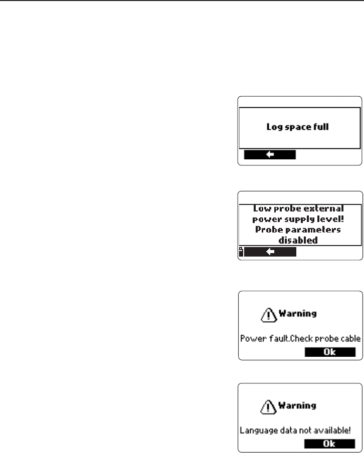 HI 9829 displays error messages to aid in troubleshooting. Warnings are dis-