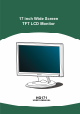 User’s Manual BEFORE YOU OPERATE THE MONITOR FEATURES • • • • • • 17” Wide screen TFT Color LCD Monitor Crisp, Clear Display for Windows Recommended Resolutions: 1440 X 900 @60Hz EPA ENERGY STAR® Ergonomic Design Space Saving, Compact Case Design CHECKING THE CONTENTS OF THE PACKAGE The product package should include the following items: LCD Monitor Screen Base Cables and User manual Power Cord VGA Cable DVI-D Cable (dual input mode optional) User’s manual Warranty card Audio Cable 8