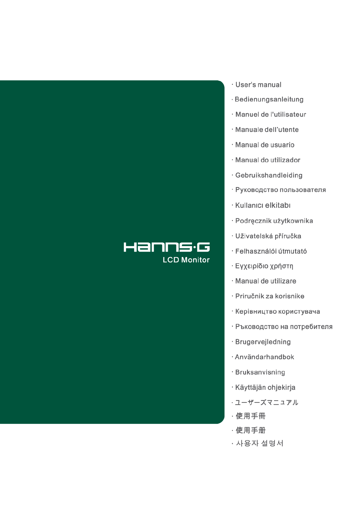 Посібник користувача ІНФОРМАЦІЯ ПРО ПЕРЕРОБКУ Ми, Hanns.G дуже піклуємося про захист навколишнього середовища й переконані, що це допоможе нам мати більш чисту землю за допомогою очищення та переробки пристроїв промислової технології, яка своє відпрацювала. Ці пристрої містять матеріали, придатні для повторного використання, які можуть бути розкладені і скомпоновані у щось нове. Інший матеріал навпаки може бути класифіковано як небезпечний та отруйний.