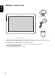 English What’s in the box Micro USB cable Power adapter Tablet PC (SN1AT7) Adapter head NOTE: The included adapter head may vary depending on the region. This Quick Start Guide and a Warranty card are also included. • If any item is damaged or missing, contact your point of purchase for assistance. • Use only approved accessories. • Accessories may vary by country or region.