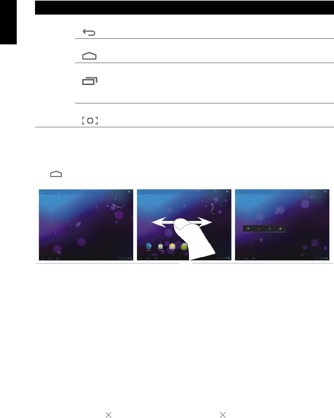 • Remove application shortcuts: Long press an application icon in the Home screen, the top of