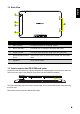 English 1.2 Back View 1 2 3 5 4 No. Item Description 1 Rear Camera For taking pictures or recording videos. 2 Micro USB Port Connects to a PC using the supplied USB cable. 3 Earphone Jack Connects to an earphone using a 3.5 mm audio jack. 4 MicroSD/SIM Card Slot Cover Remove the cover to access the microSD and SIM cards slots. 5 Speakers Emits sound output. 1.