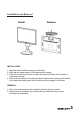Installation and Removal Install Remove INSTALLATION: 1. Align the monitor with the opening in the base. 2. Note that the longer section of the base points forward. 3. Snap the monitor into its base. A clear click sound will affirm that the base is connected correctly. 4. Verify that the monitor is securely attached to the base by looking at the bottom of the base and making sure that the clips are fully engaged in the base. REMOVAL: 1. Put on the desk and press the hook that hold the monitor in place. 2.