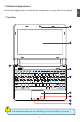 1-2 External Appearance Refer to the diagram below to identify the components on every side of the netbook. 1 1. Top View 1 2 9 3 4 5 6 7 CA UT IO N 8 ! Your Netbook keyboard may vary depending on the country/region of purchase.