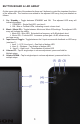 BUTTON BOARD & LED ARRAY On the upper right side of the subwoofer there are 5 buttons to control the important functions of the subwoofer. The functions are related to the adjacent LED array, they are detailed as follows: 1. 2. 3. 4. 5. On / Standby – Toggle between STANDBY and ON. The adjacent LED array will indicate the status: i. STANDBY – Single Red LED, see item 6. ii. ON - Blue or Fuchsia LEDs, indicating current volume level. Music / Movie EQ – Toggle between Movie and Music EQ settings.