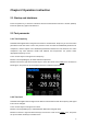 1.2 User’s Interface 1.2.1 Measurement Interface 1. Main parameter display 2. Secondary parameter display 3. ’HOLD’ indicates the data holding state. 4. USB connection state, displayed when it is connected to the PC and hidden at any other time; When connected the instrument to the computer in the initial, the USB icon is white, which means that the USB is connected. At this time, the key is still available and unlocked.