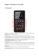 Chapter 1 Overview of front panel 1.1 Front panel Description of the front panel is shown in the figure (Note: In this manual, long press means holding the key for more than 2 seconds). 1. Display: 2.8 inch TFT LCD screen, which display all functions of the instrument. 2. R-X shortcut key: Select the main parameter as R and the secondary parameter as X directly. 3. C-D shortcut key: Select the main parameter as C and the secondary parameter as D directly. 4.